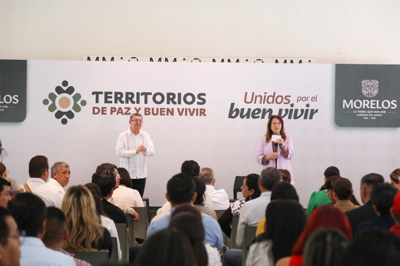 La gobernadora de Morelos, Margarita González Saravia, presentó el programa "Territorios de Paz y Buen Vivir", el pasado viernes 25 de abril, destacando que este es el proyecto más importante de su administración y que beneficiará a miles de morelenses en situación de rezago social. Asimismo, subrayó que trabajará incansablemente junto con su gabinete para visitar cada rincón del estado y consolidar la transformación en favor del pueblo.