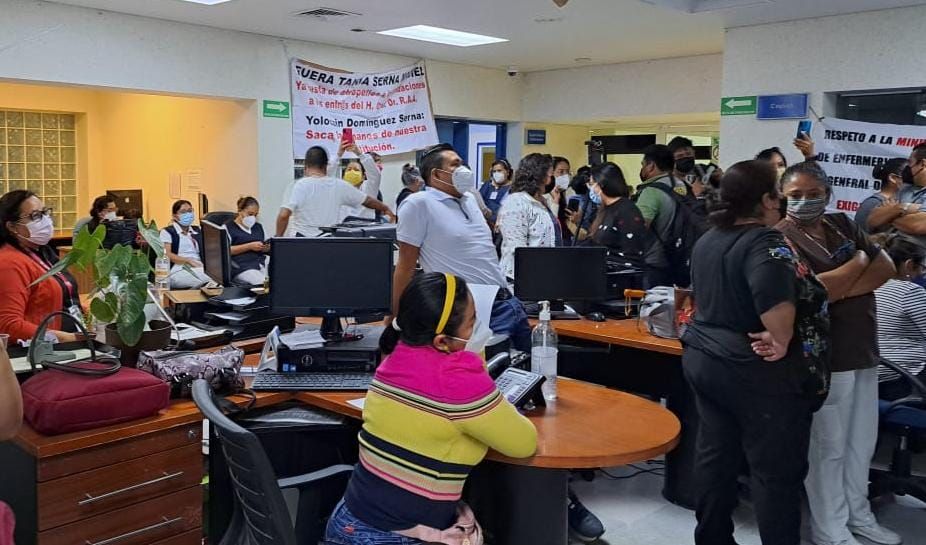 Decenas de enfermeras se manifestaron al interior del Hospital Raymundo Abarca Alarcón, para exigir el retiro de la jefa del área, Tania Serna Maciel, quien ya había sido removida de su cargo tras protestas anteriores.