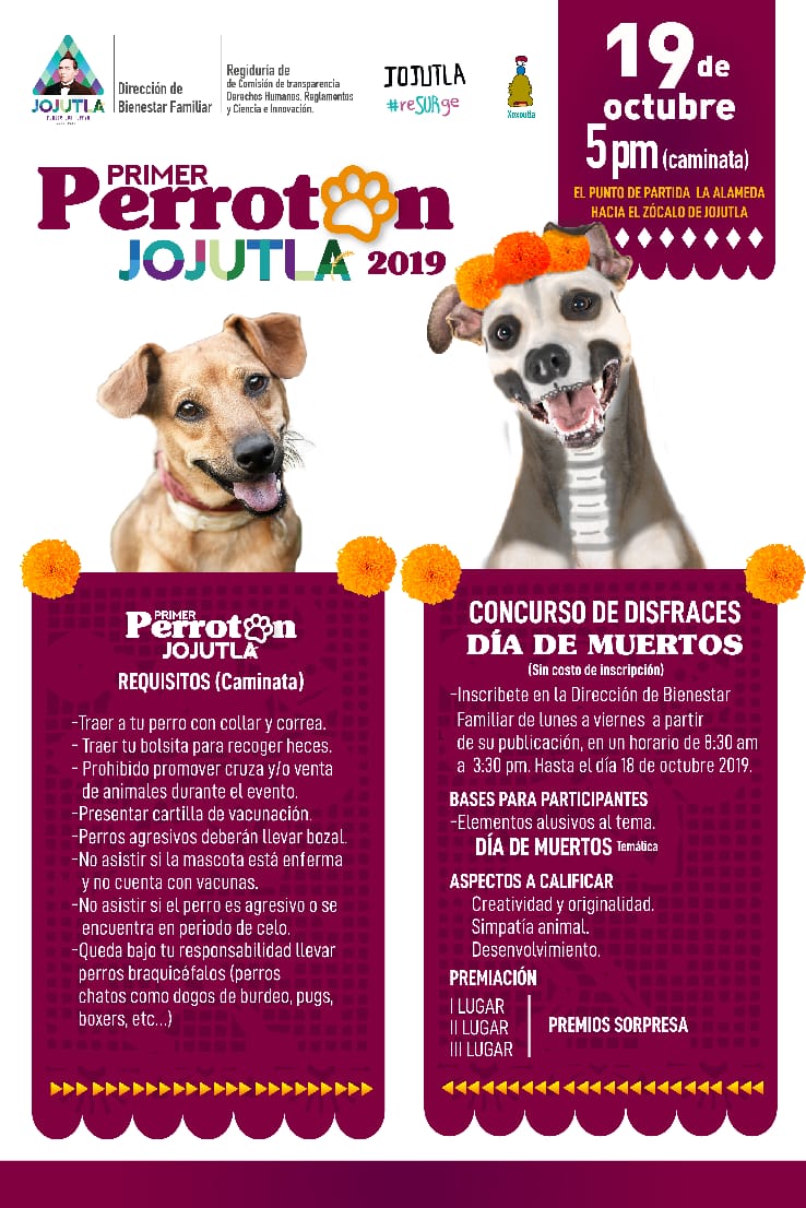 Todos aseguran que tienen al mejor perro del mundo, y ha llegado el momento de demostrarlo en el primer “Perrotón 2019” que se llevará a cabo en Jojutla el próximo sábado 19 de octubre en punto de las 17 horas.