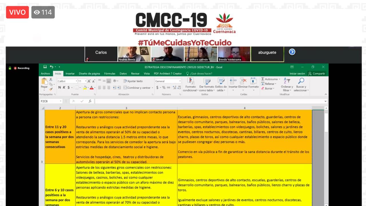 Durante la sesión del Comité Municipal Contra el COVID-19, en Cuernavaca, se dieron a conocer las formas en que los negocios será reabiertos y bajo que estrictas medidas de seguridad lo harán.