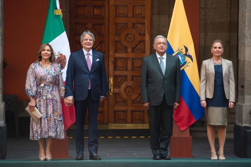 Los presidentes de México, Andrés Manuel López Obrador y de Ecuador, Guillermo Lasso, acompañados de sus esposas en Palacio Nacional.