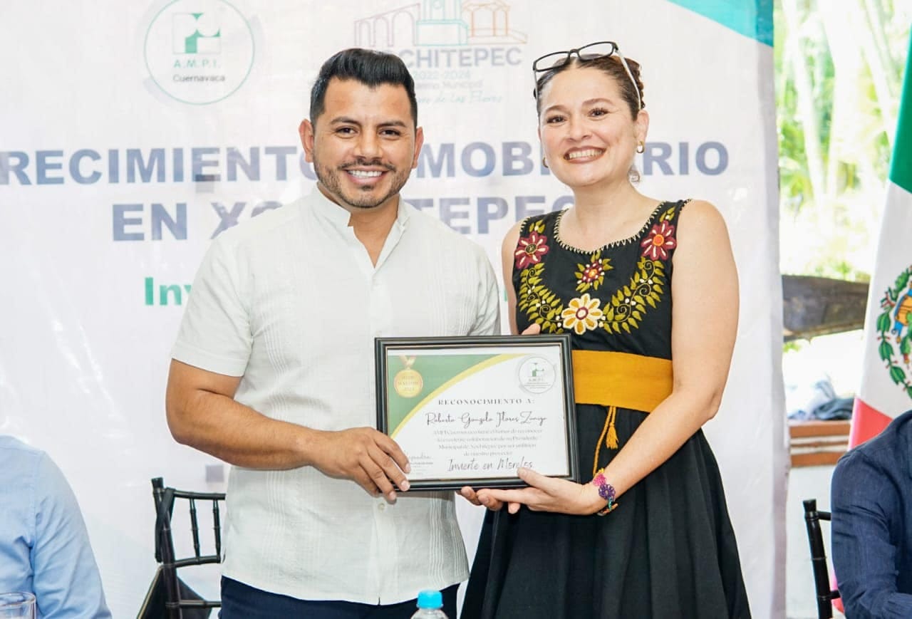 El día de ayer, el Alcalde de Xochitepec se reunió con la presidenta de la Asociación Mexicana de Profesionales Inmobiliarios (AMPI) en Cuernavaca, Alejandra Salcido, para recibir un reconocimiento por la administración que maneja dentro del municipio.