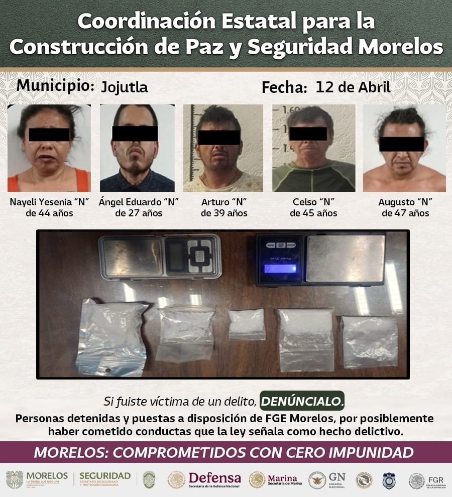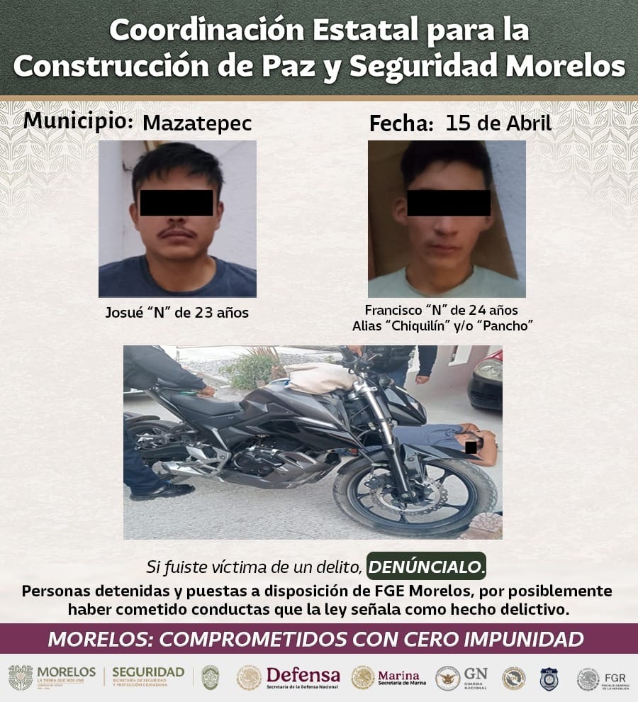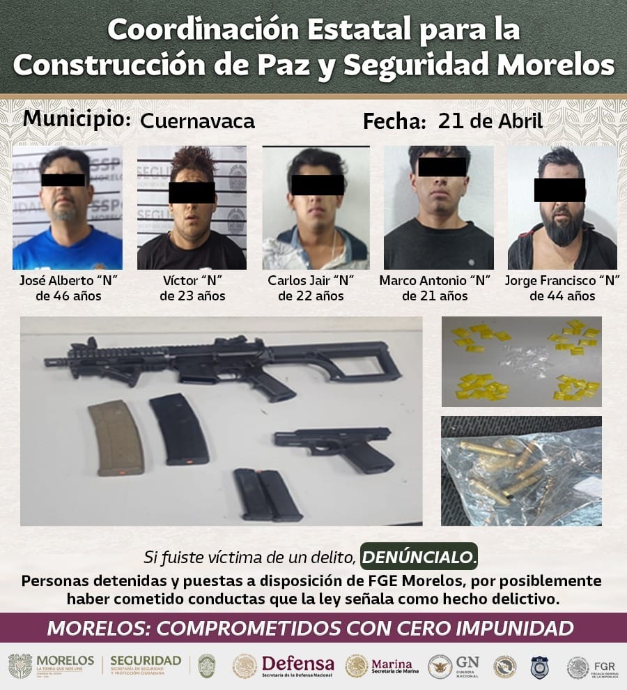 El Gobierno de Morelos informó la detención de 28 generadores de violencia en los últimos 15 días, como resultado de 10 operativos interinstitucionales realizados en coordinación con fuerzas federales, estatales y municipales.