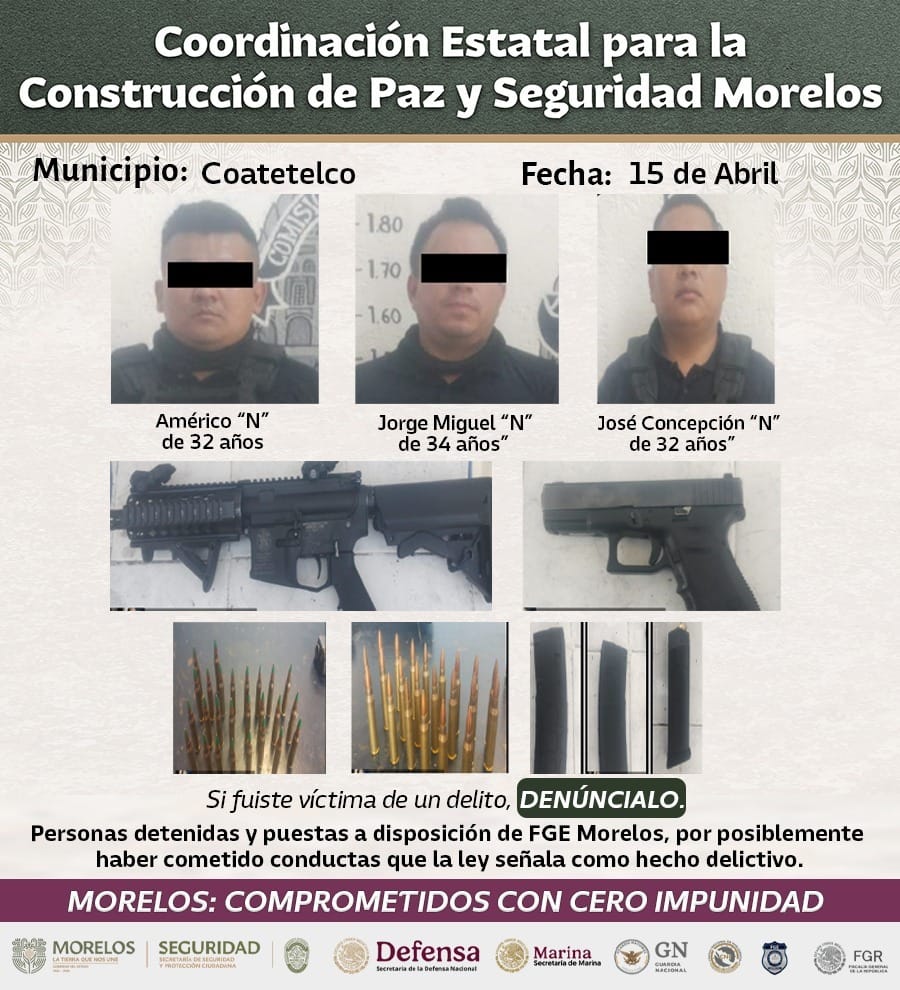 Refuerzan seguridad en Morelos: detienen a 28 generadores de violencia