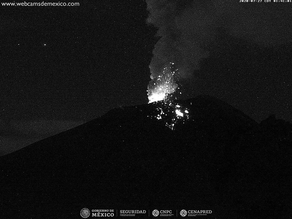 #Popocatépetl. Durante la noche se mantuvo la expulsión de fragmentos incandescentes a corta distancia del cráter sin incrementar la intensidad. Tiene emisión constante de vapor de agua, gas y ceniza con una altura de 1500 m con dirección noroeste.????de alerta en #AmarilloFase2. pic.twitter.com/dO43QHvTqU