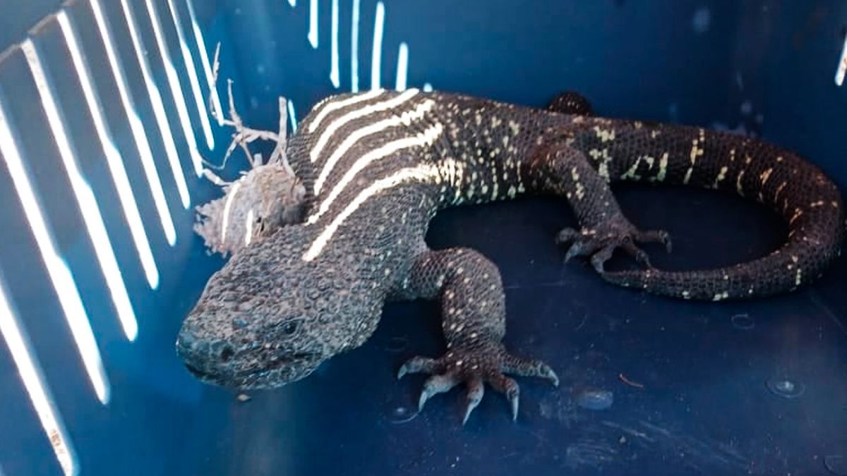 El lagarto estaba muy baja de peso, necesitando tratamiento médico y alimentación. Cabe mencionar que, será reintroducido a su hábitat natural en los próximos días.