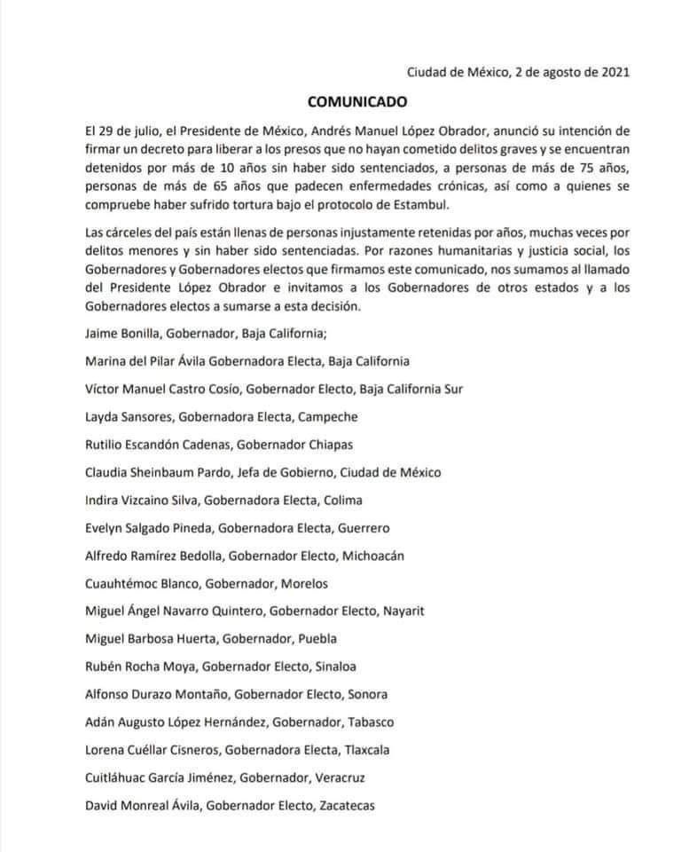 Este lunes el gobierno de Morelos informó a través de un comunicado el respaldo por parte de Cuauhtémoc Blanco Bravo, gobernador estatal, hacia el presidente López Obrador en el tema de liberar a personas privadas de la libertad que no hayan cometido delitos graves, y que además en 10 años no han recibido sentencia.
