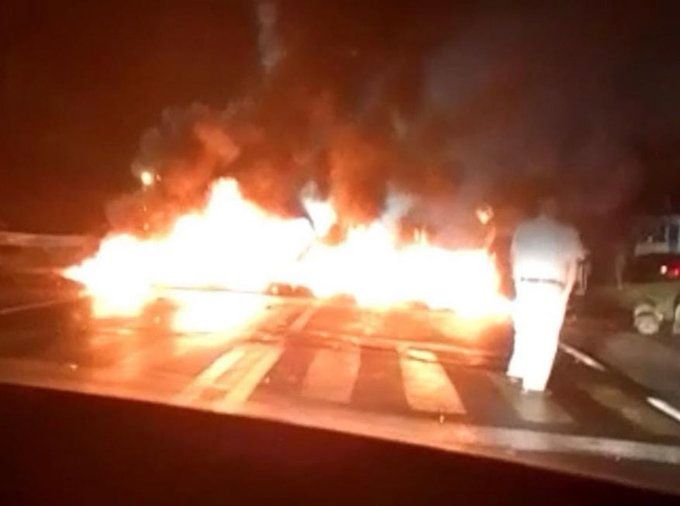 Minutos después, en el kilometro 47 de la carretera México-Cuernavaca, los inconformes bloquearon esa vialidad y más tarde, quemaron llantas para presionar a los uniformados a soltar a ambos detenidos. Después de algunos instantes los policías accedieron.