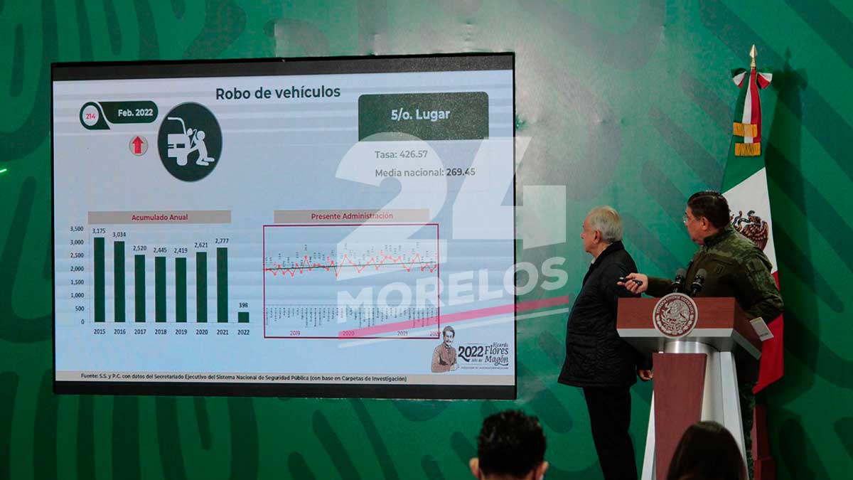 Durante la conferencia de prensa del presidente de México, Andrés Manuel López Obrador, dirigida desde la 24ava Zona Militar en Cuernavaca, fueron revelados los municipios de Morelos con mayor incidencia delictiva en homicidios dolosos, robo de vehículo y narcomenudeo.