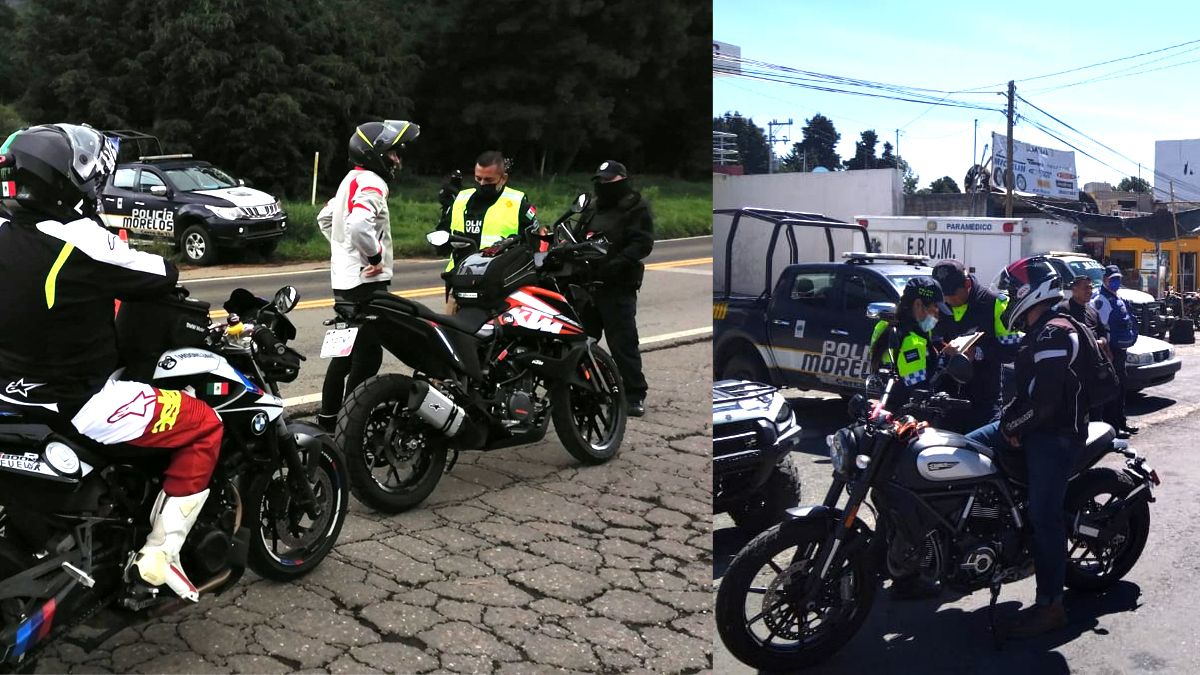 Por segundo fin de semana consecutivo, personal de la Policía preventiva de Morelos y elementos de tránsito realizaron una revisión a los motociclistas que llegan al poblado de Tres Marías en el municipio de Huitzilac.