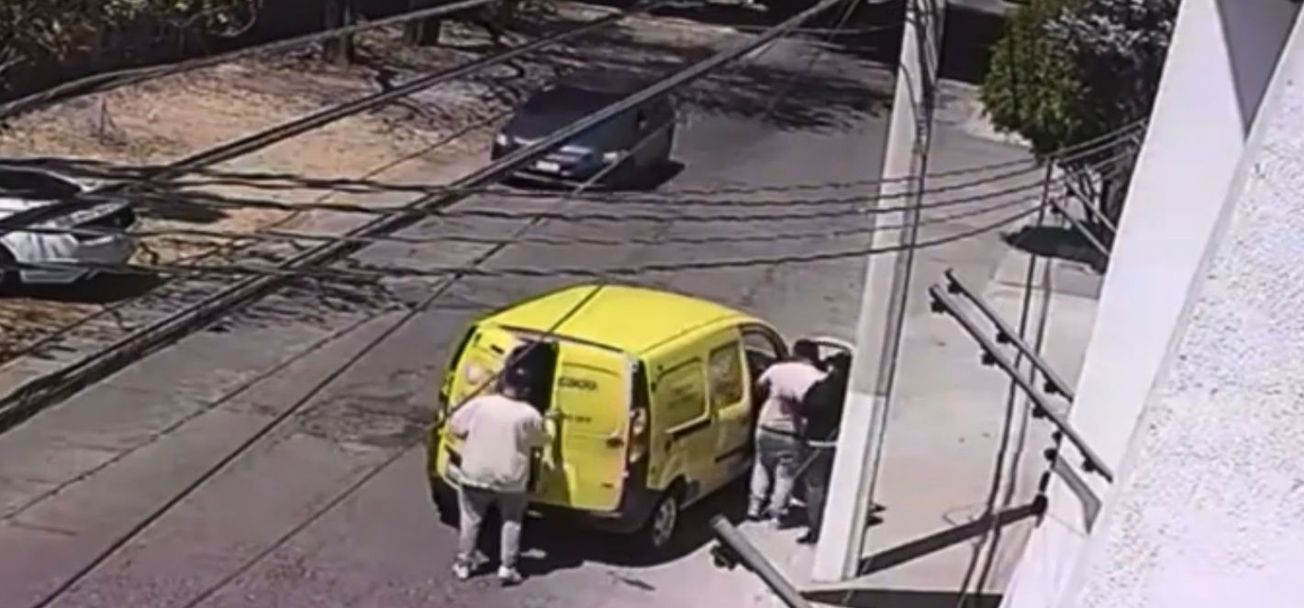 De inmediato amagan al repartidor y lo obligan a subirse a su propio vehículo por el lado del copiloto, mientras que uno de los dos sujetos entra por el lado del conductor para llevarse la unidad.