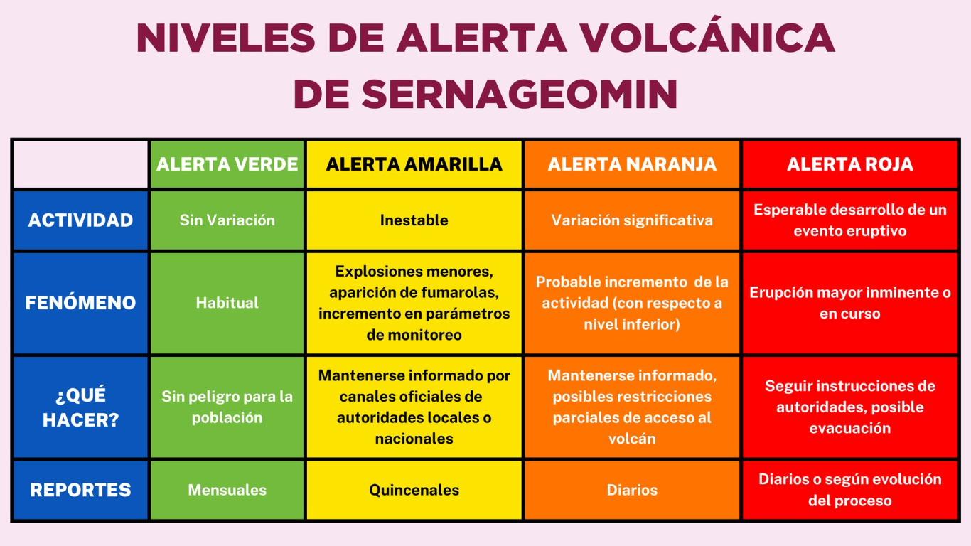 Fase 1: Se activa cuando se registra una actividad explosiva de peligro intermedio a alto. En esta fase de la Alerta Volcánica, se observa la presencia de una columna eruptiva de varios kilómetros compuesta por vapor de agua y gas. También se pueden lanzar fragmentos incandescentes sobre las laderas del volcán.
