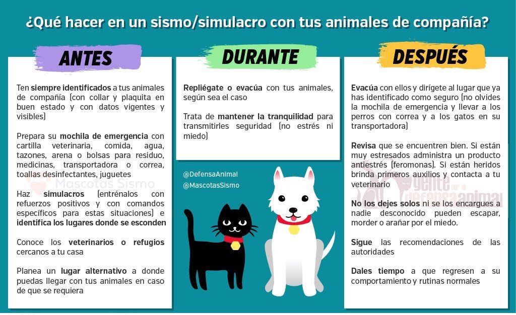 Prepara una mochila especial con comida y datos de tus mascotas y manten la calma en caso de presentarse un evento de esta naturaleza.