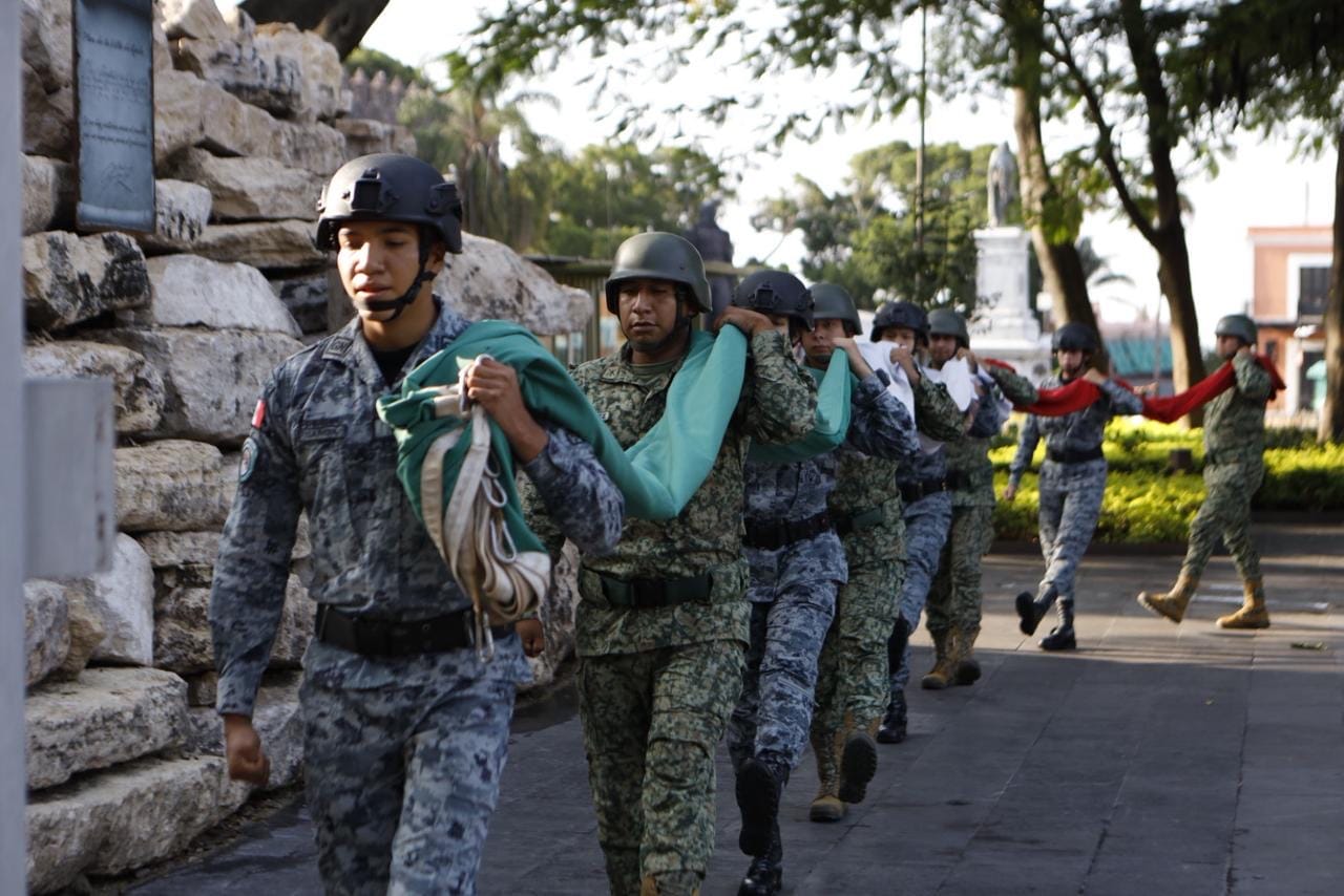 La mañana de este domingo, las y los integrantes de las dependencias de Salud entonaron con respeto el Himno Nacional Mexicano junto a autoridades de los tres órdenes de Gobierno, reunidas en la “Plaza de Armas General Emiliano Zapata Salazar”, en Cuernavaca.