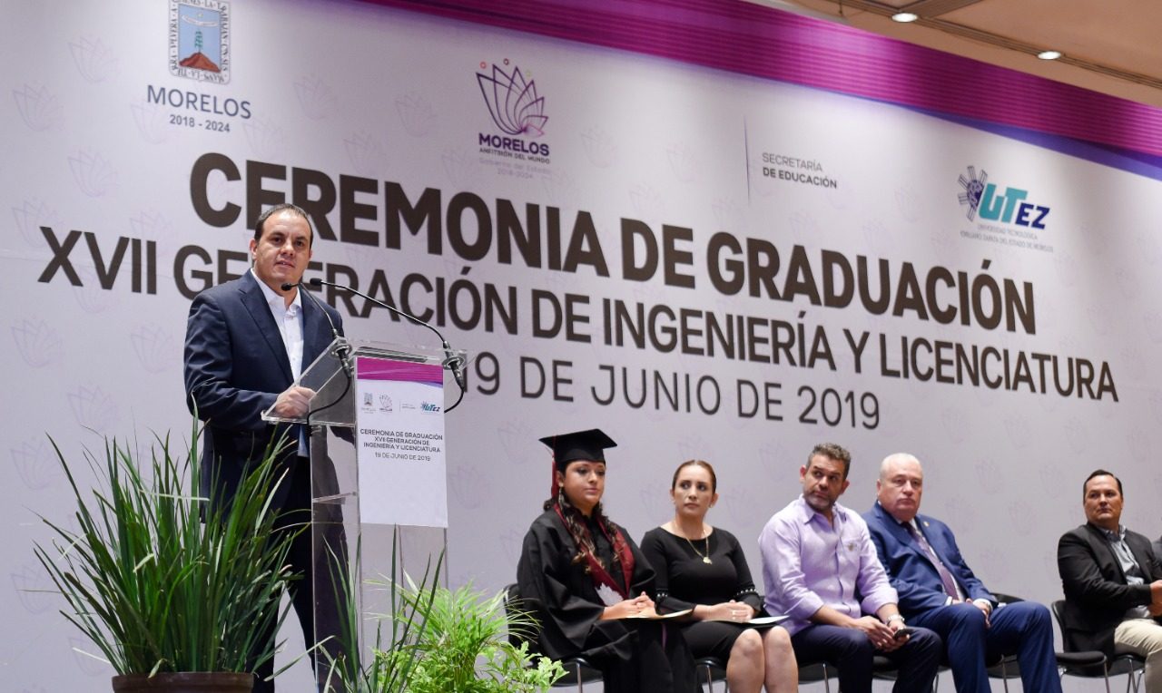 En la graduación de la generación XVII de ingenierías y licenciaturas de la Universidad Tecnológica Emiliano Zapata (UTEZ), el Gobernador Constitucional del Estado de Morelos; Cuauhtémoc Blanco Bravo, realizó un llamado a los 363 hombres y 267 mujeres que concluyeron sus estudios universitarios.