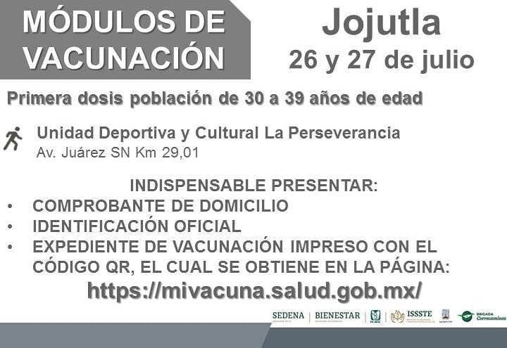 La vacunación para adultos de 30 años y más inició ayer en el municipio de Jojutla, donde se han aplicado 2 mil 610 dosis de Sinovac a este sector.