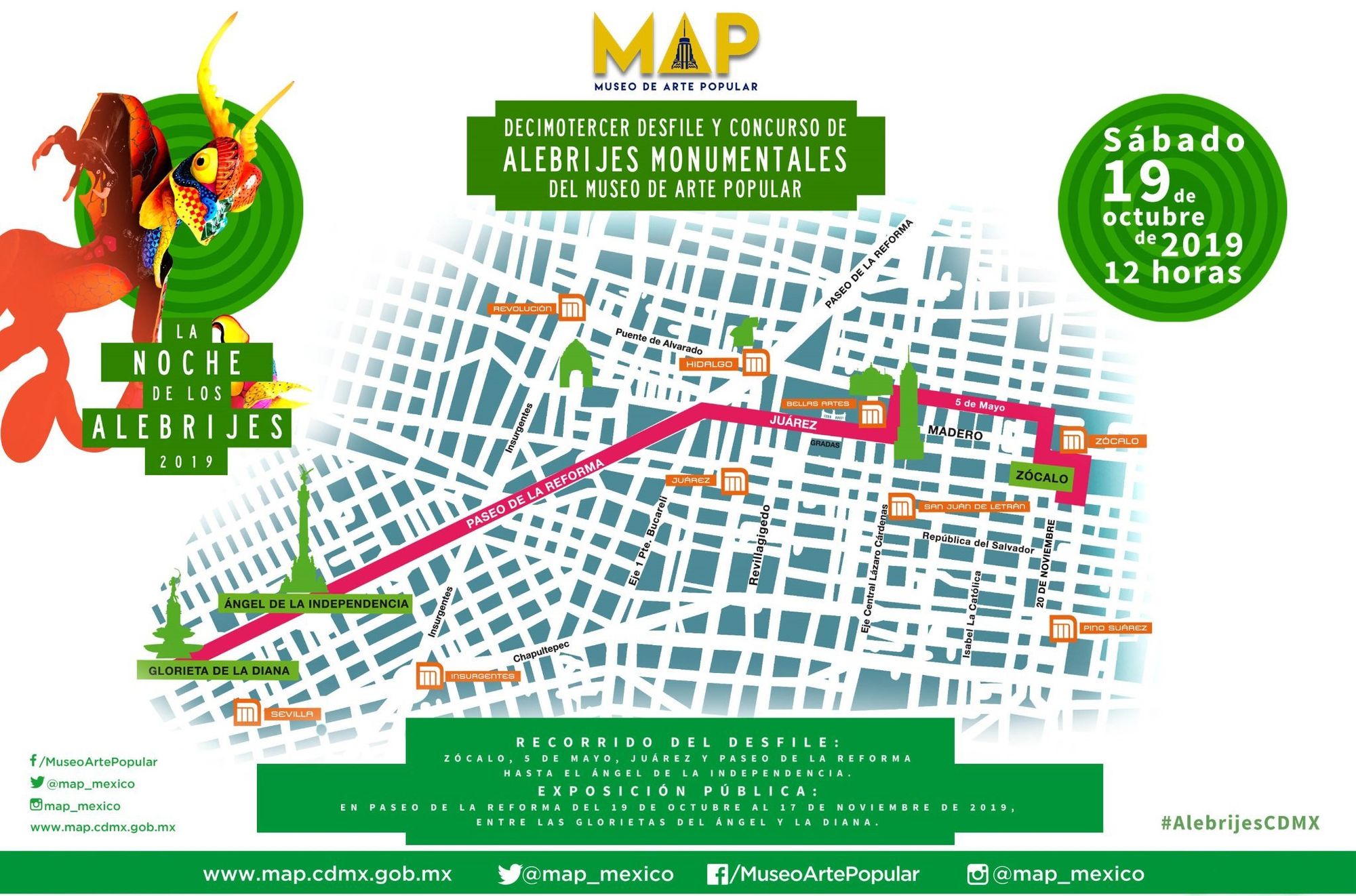 Si este fin de semana no tienes planes, el sábado en punto de las 12:00 horas, se realizará la 13 edición del concurso y desfile de 250 alebrijes monumentales, saliendo desde el Zócalo de la Ciudad de México, mismos que pasarán por la 5 de Mayo, la Avenida Juárez, los carriles centrales de Paseo de la Reforma y la Glorieta del Ángel de la Independencia.