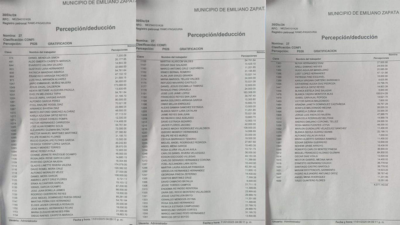 De acuerdo con documentos oficiales que salieron a la luz, varios exfuncionarios beneficiados recibieron pagos que superaron los 150 mil pesos cada uno, sumando un total de 4 millones 377 mil 143.04 pesos.