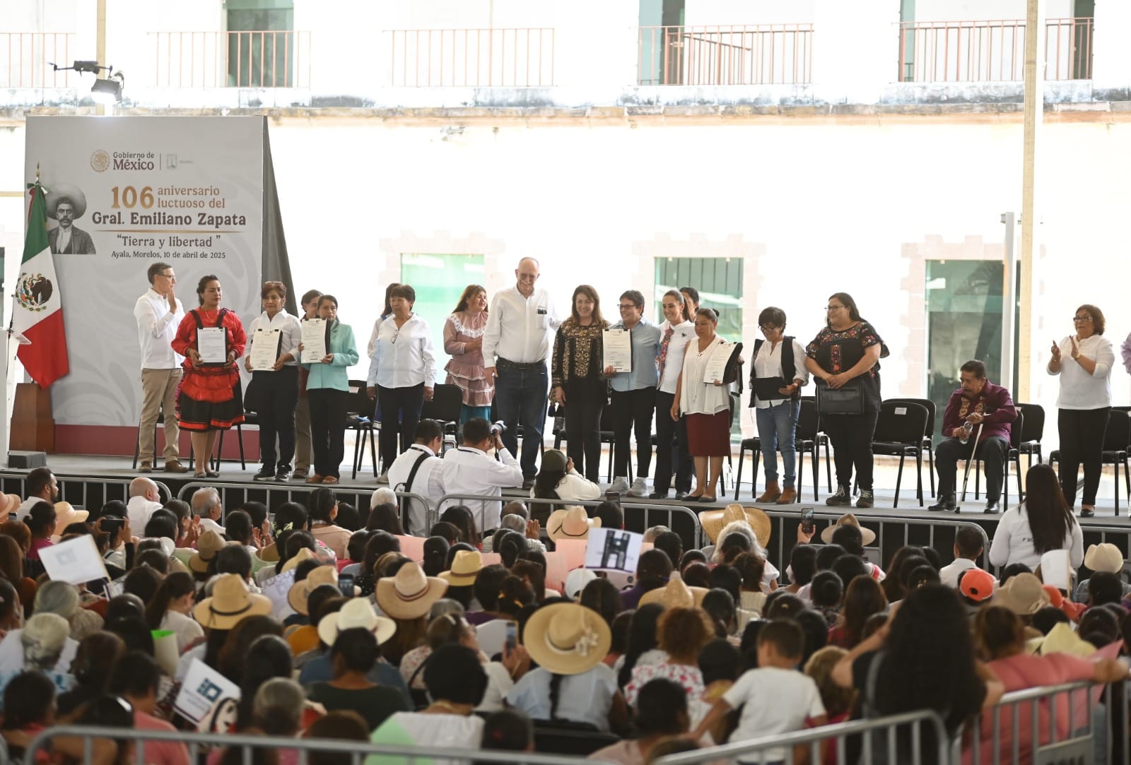 Durante el acto conmemorativo, se entregaron títulos y constancias de propiedad a integrantes de la Red de Mujeres Agraristas, en un gesto que busca hacer justicia histórica al papel de las mujeres en el campo mexicano.