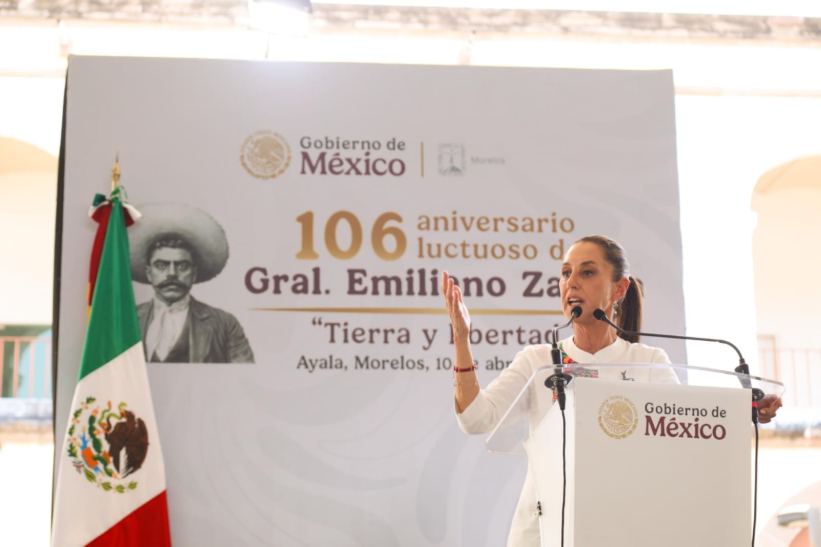 En el marco del 106 aniversario luctuoso de Emiliano Zapata, la presidenta de México, Claudia Sheinbaum, y la gobernadora de Morelos, Margarita González Saravia, encabezaron una emotiva ceremonia en la Ex Hacienda de Chinameca, Ayala.