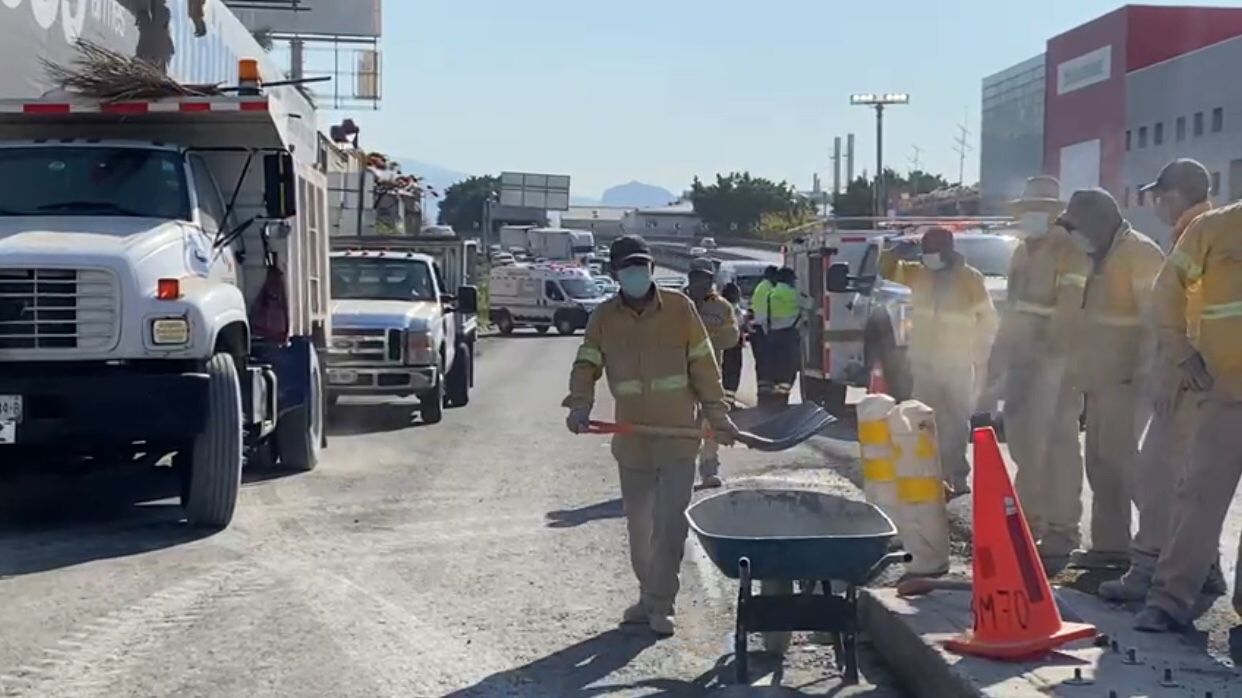 Por varias horas se llevaron los trabajos en el lugar y solo se habilitó un carril para automovilistas que circulaban de norte a sur en los carriles laterales.