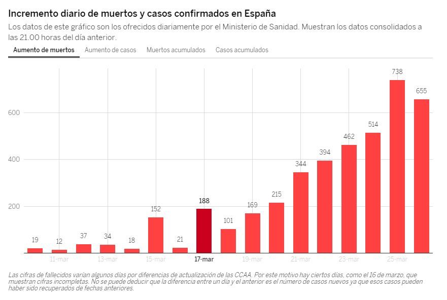 Las estadísticas ponen a España como el segundo país con más muertes, solo detrás de Italia, país que superó a China el miércoles.