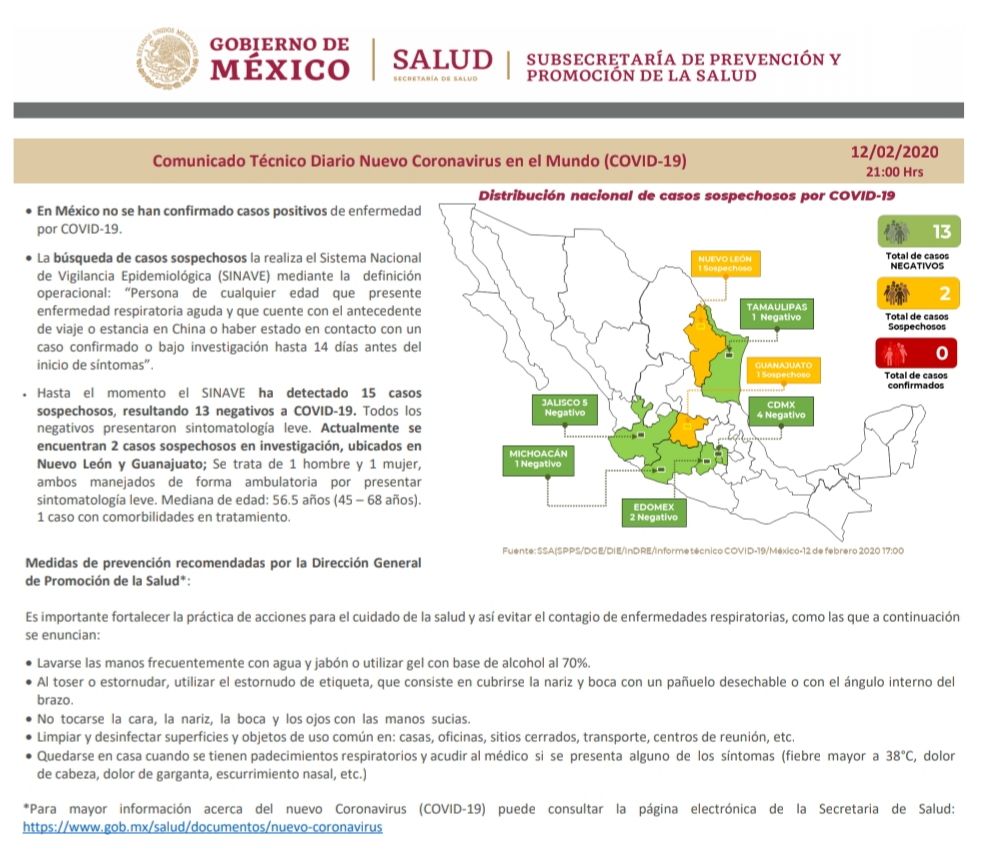 A pesar de que el Gobierno de México aseguró que el coronavirus llegará al país tarde o temprano, hasta ahora no se ha confirmado ningún caso, pero ya han sumado 15 pacientes sospechosos.