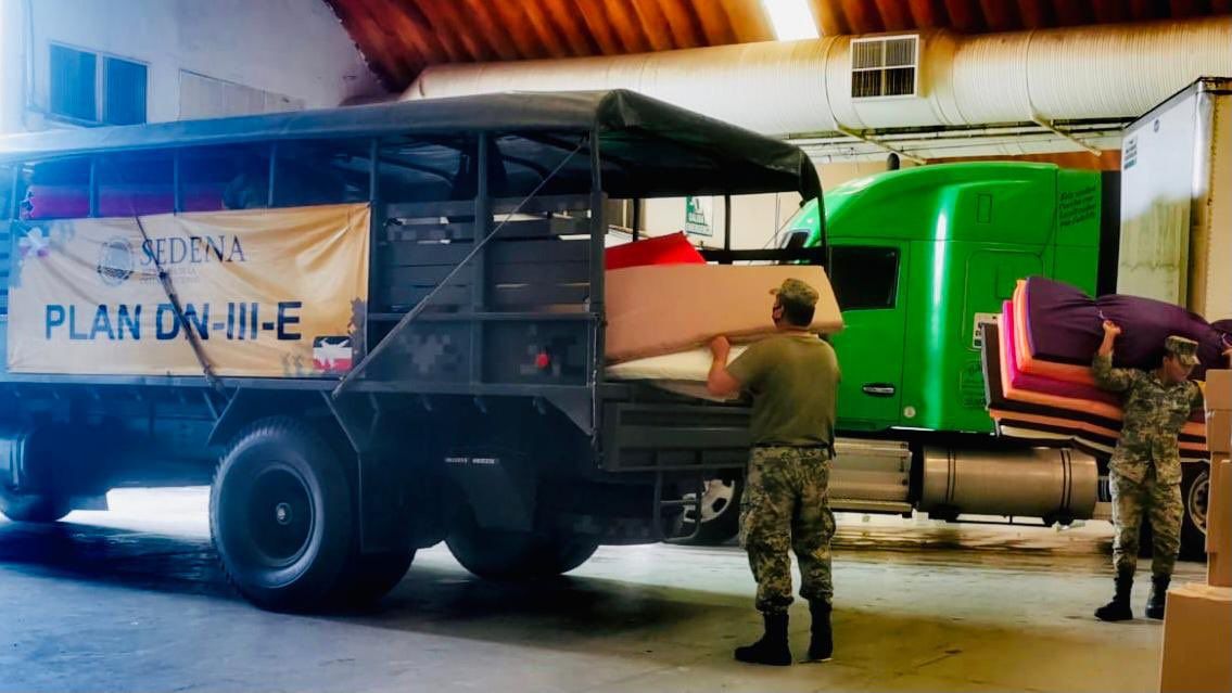 Elementos de SEDENA activaron el Plan DN-III-E y en conjunto con Protección Civil y la Secretaría de Marina (SEMAR), continúan realizando la entrega de ayuda humanitaria.