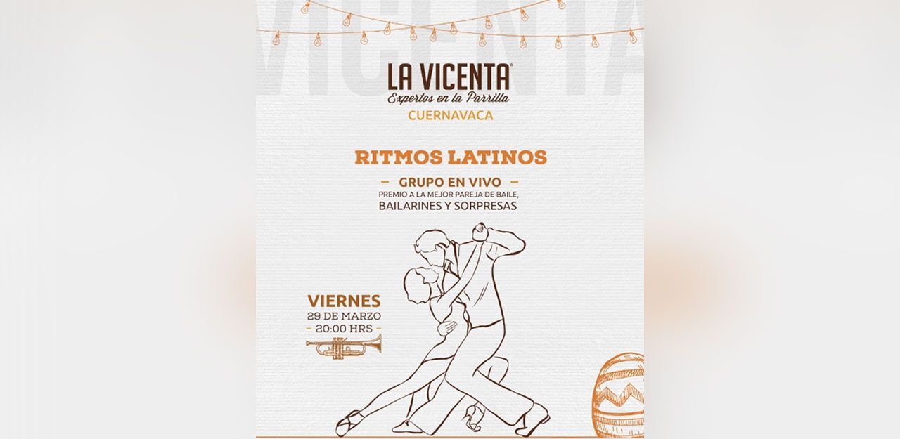 Ahora sí, ya que sabes todos los beneficios que tiene el bailar, no puedes dejar de participar en la Fiesta de Ritmos Latinos que La Vicenta Cuernavaca tiene preparado para ti.