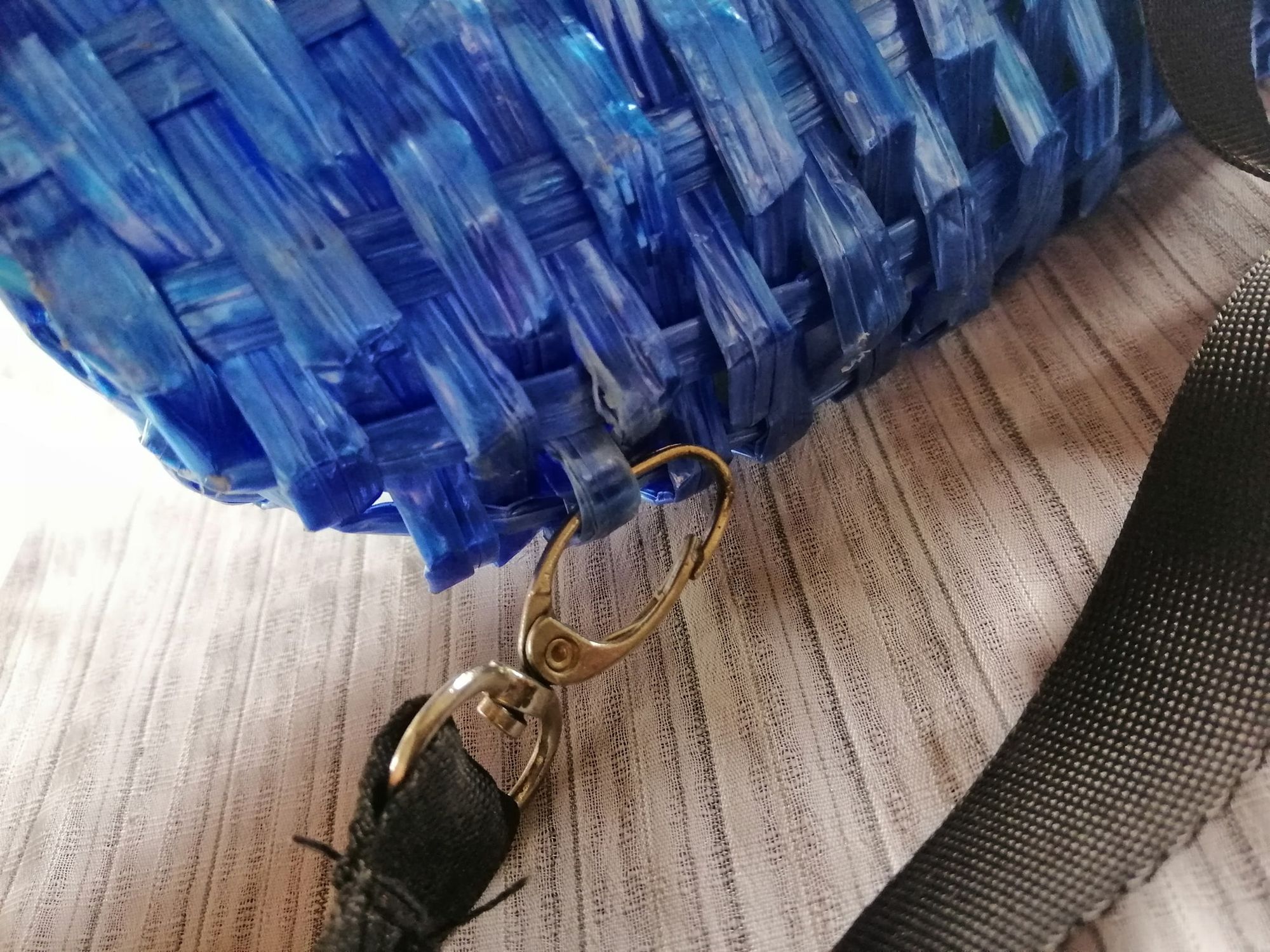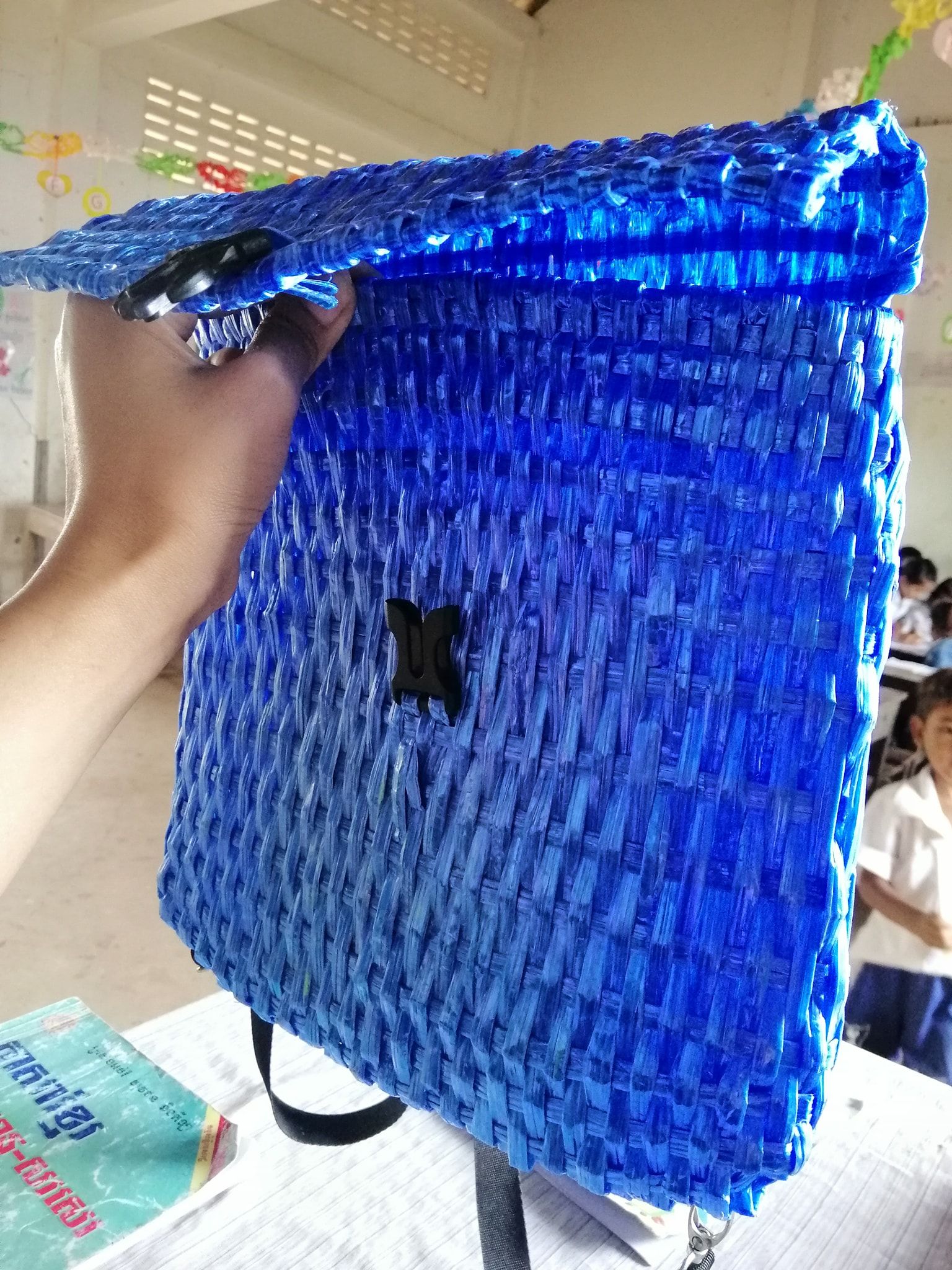 Sin embargo, su padre al dedicarse al campo no contaba con el recurso para invertir en otra, por lo que gracias a su habilidad se le ocurrió tejer una mochila con un material conocido como “rafia”, en color azul.