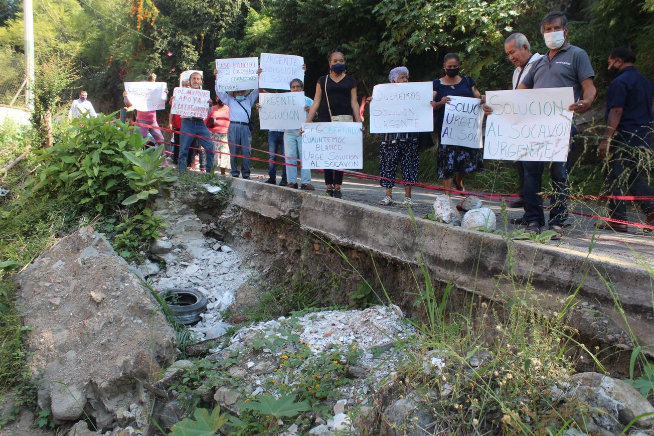 Los habitantes afirmaron que primero, hace un año se cayó una barda perimetral que se encontraba a un costado del camino y ahora, tras las lluvias, la tierra debajo del asfalto ha estado deslizándose poco a poco.
