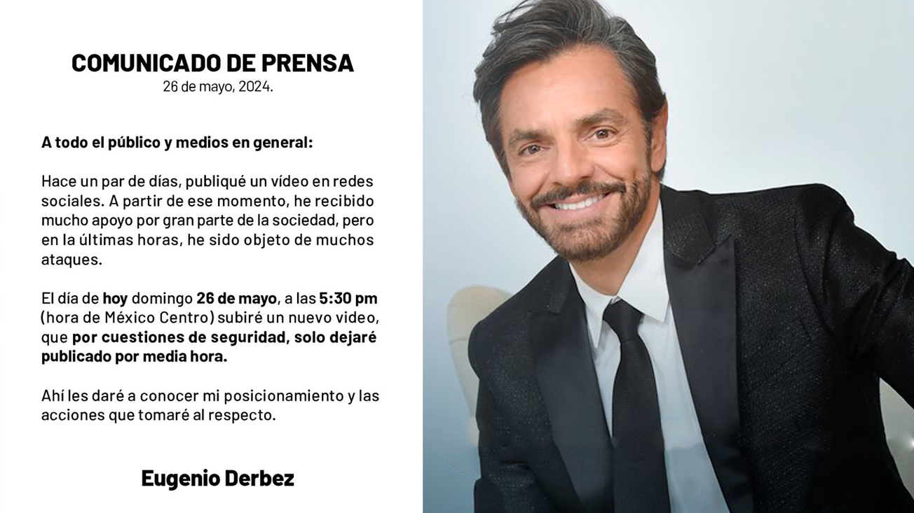 “El día de hoy domingo 26 de mayo, a las 5:30 pm (hora de México Centro) subiré un nuevo video, que por cuestiones de seguridad, solo dejaré publicado por media hora… ahí les daré a conocer mi posicionamiento y las acciones que tomaré al respecto”, señala el comunicado difundido esta tarde en su cuenta oficial de X (antes Twitter).