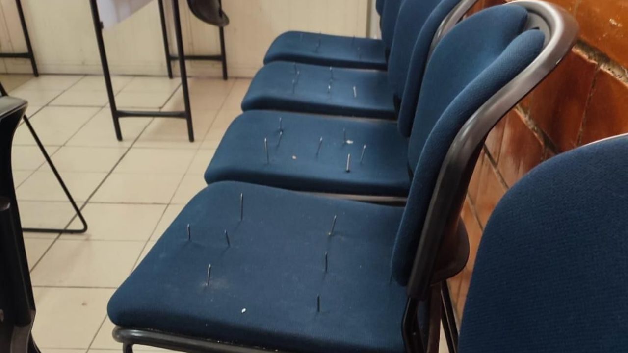 Una estudiante, en su cuenta de Facebook, comentó que el pasado 12 de octubre, el joven agresor coloco clavos en al menos cinco sillas, con la intención de lastimar.