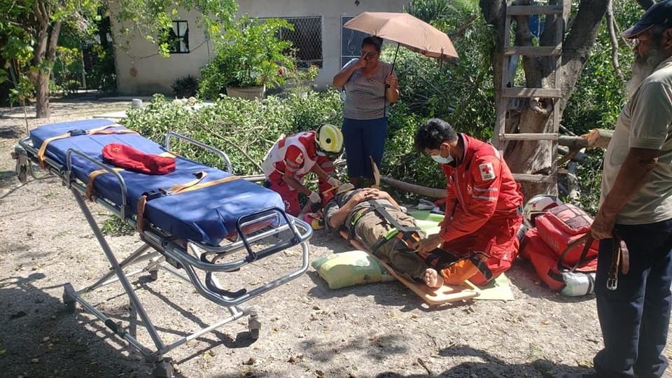 La tarde de este viernes, un hombre de la tercera edad sufrió una caída de un árbol y resultó lesionado por lo que tuvo que ser atendido por paramédicos de Cruz Roja Morelos.