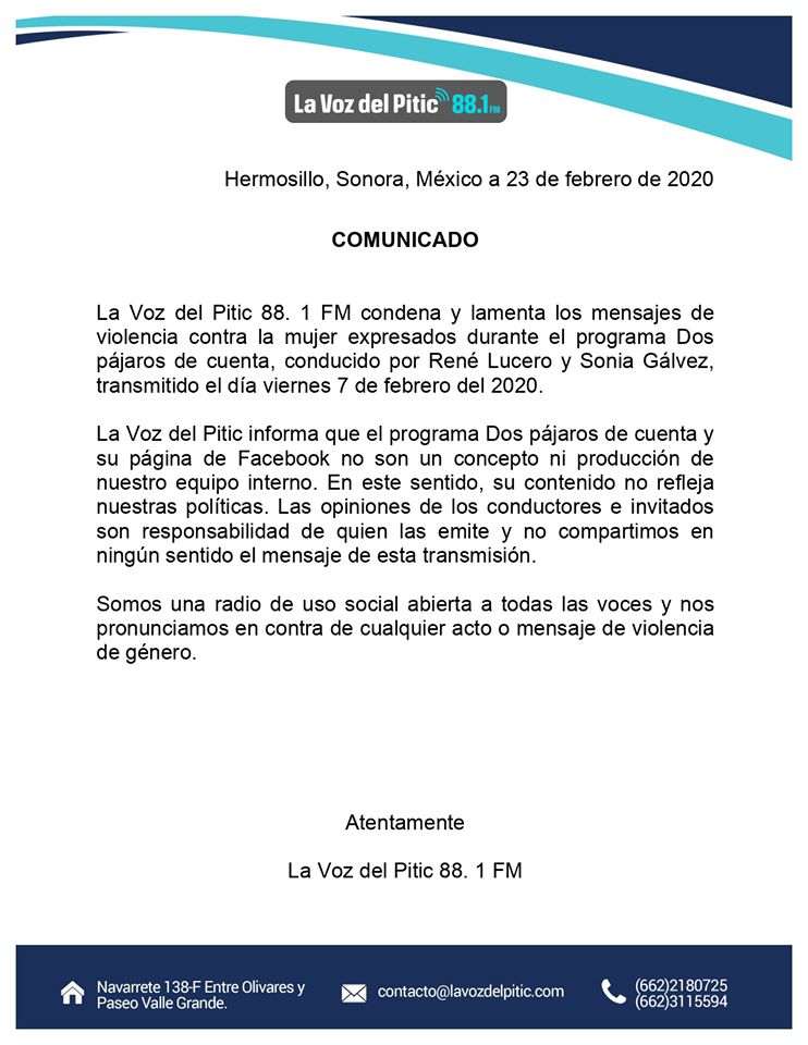 Por su parte, la radiodifusora se deslindó de las declaraciones, argumentando que el programa “Dos pájaros de cuenta” es independiente a la producción de la estación.