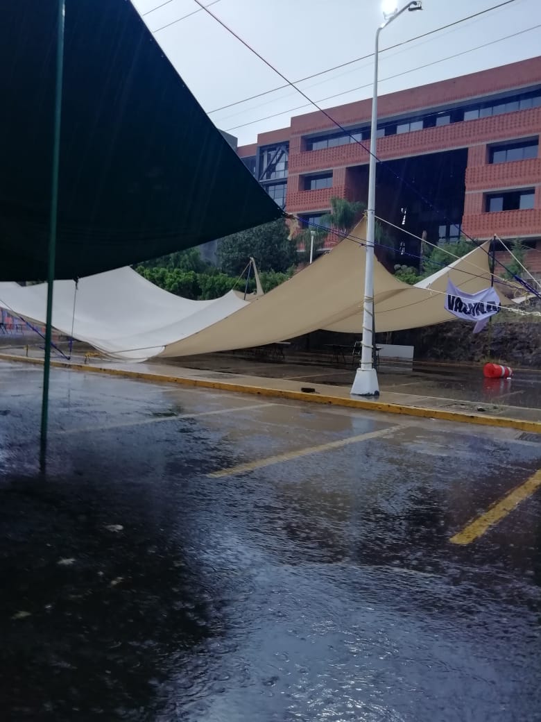 Las fuertes lluvias registradas la tarde noche de este miércoles causaron estragos en las carpas colocadas en el módulo de vacunación de la Universidad Autónoma del Estado de Morelos UAEM, razón por la cual la aplicación de dosis se retrasó.