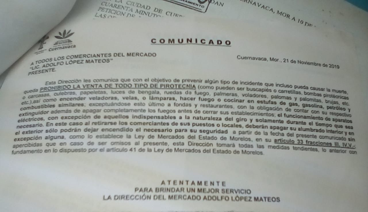 A pesar de que durante la pasada administración del mercado Adolfo López Mateos de Cuernavaca, se prohibió la venta de pirotecnia, este año sí se instalaron comerciantes que ofrecen este tipo de productos.
