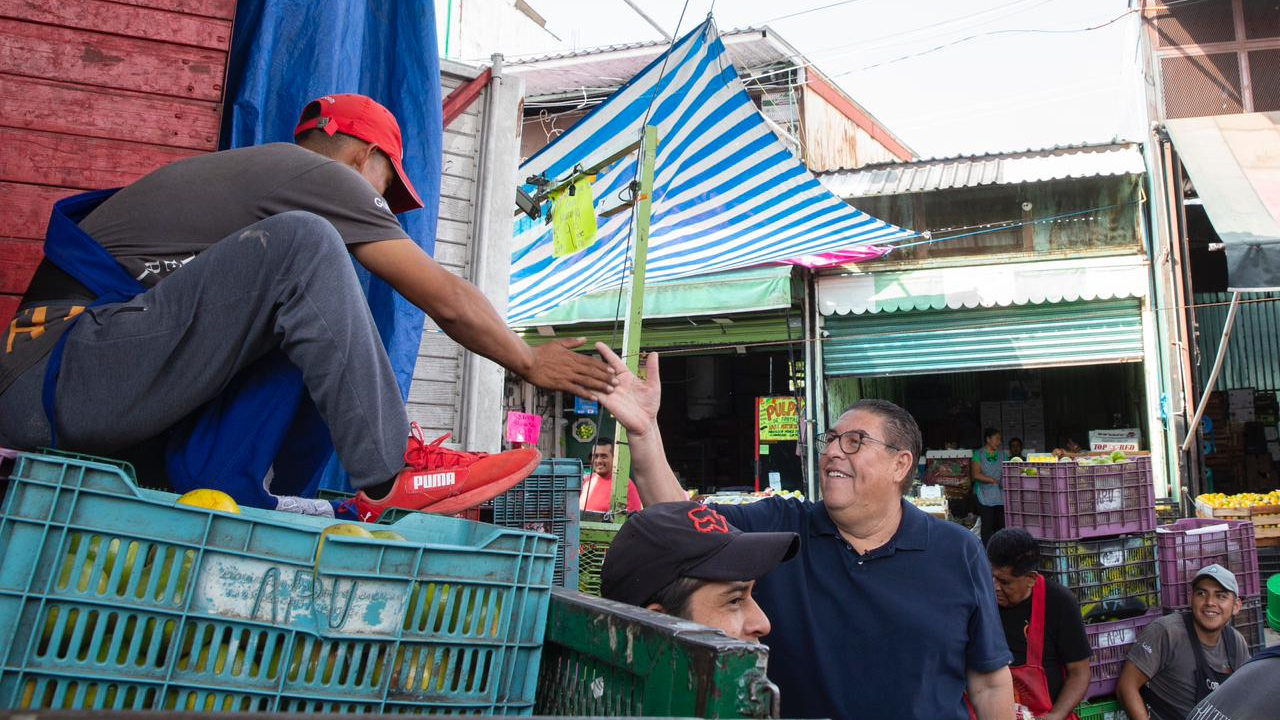 Mercado Salgado recorrió áreas de carbón, zapatos y flores con quien compartió que en su adolescencia Víctor Mercado trabajó con una de sus tías en el café Gloria y por ello, le tiene un enorme cariño a esta central de abasto.