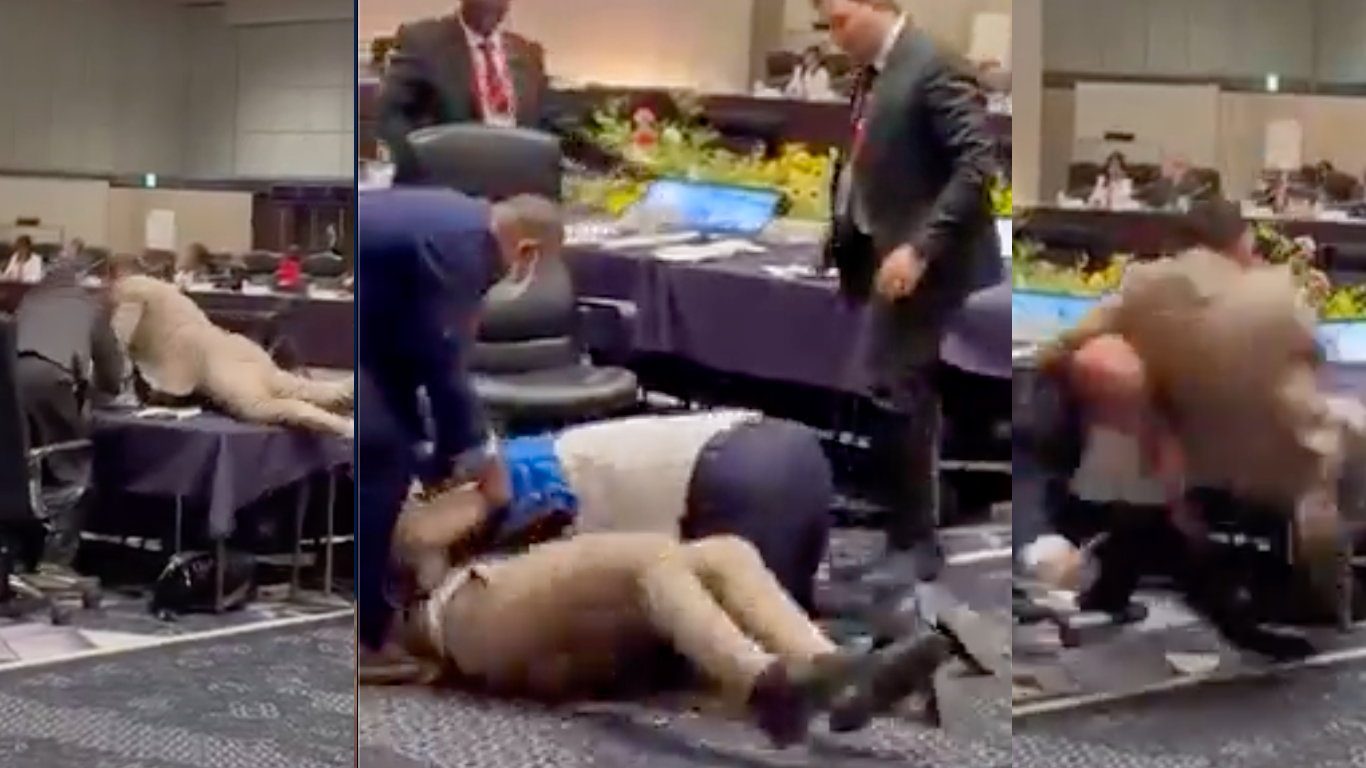 Este gesto enfureció a un funcionario marroquí, quien se abalanzó sobre el delegado para retirar el distintivo. Inmediatamente, un representante argelino intervino para defender al delegado del Polisario, lanzándose contra el marroquí y tirándolo al suelo.
