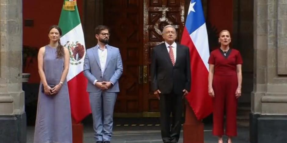 El Palacio Nacional abrió sus puertas este día para recibir a Gabriel Boric Font, Presidente de Chile, quien acompañado de su esposa, Irina Karamanos, se encuentra en México realizando su primer visita oficial a nuestro país como mandatario de aquél país.