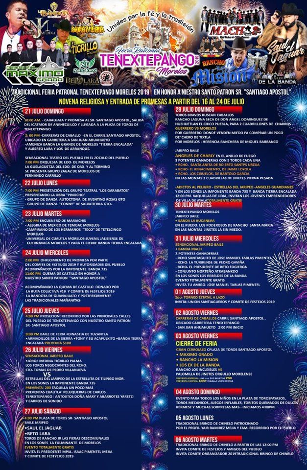La tradicional Feria de Tenextepango 2019 ya inició y culminará hasta el próximo 3 de agosto en honor al santo patrono Santiago Apóstol en el municipio de Ayala, Morelos.