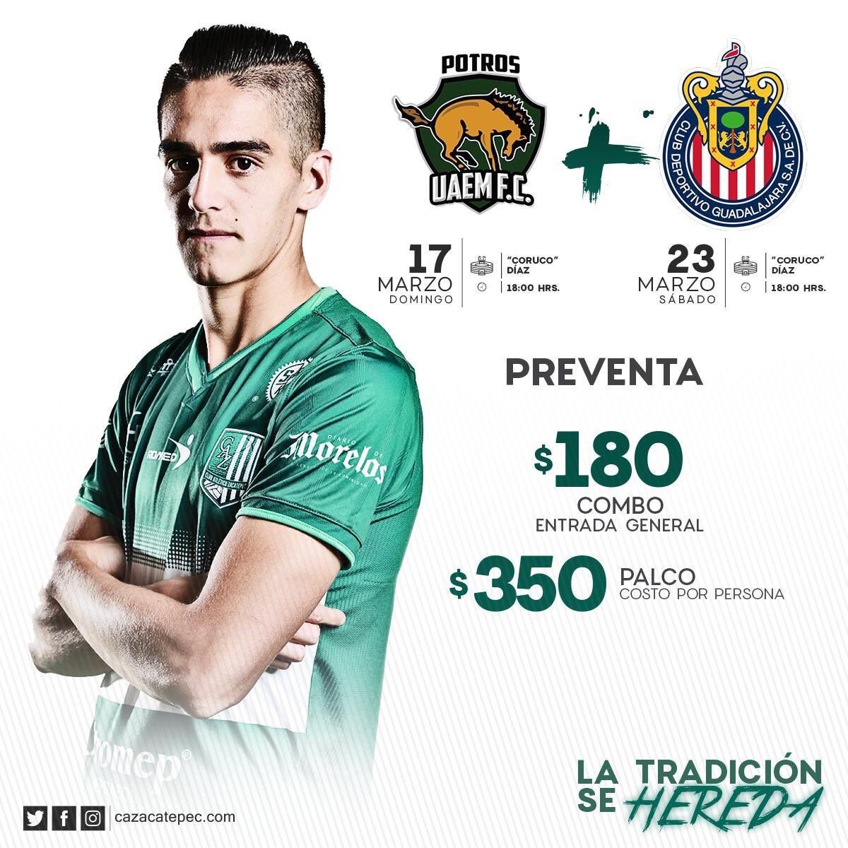 El día de ayer comenzó la venta de boletos para el partido amistoso que disputará el Atlético Zacatepec vs Chivas en el “Coruco” Díaz el 23 de marzo a las 6 de la tarde.