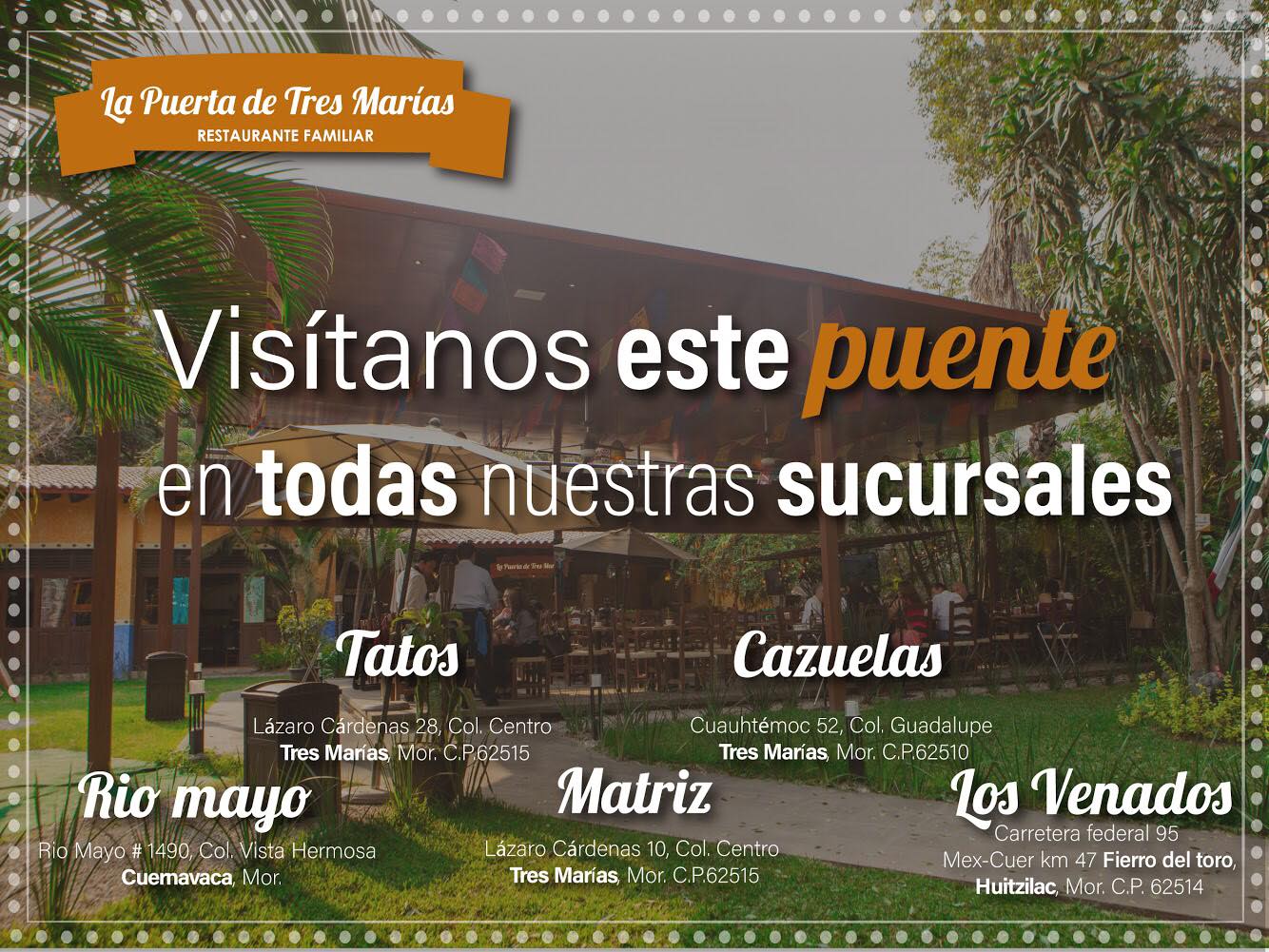 ¿Necesitas un banquete? Comunícate al 777 482 3728 y La Puerta de Tres Marías tendrá las mejores opciones para tu evento.