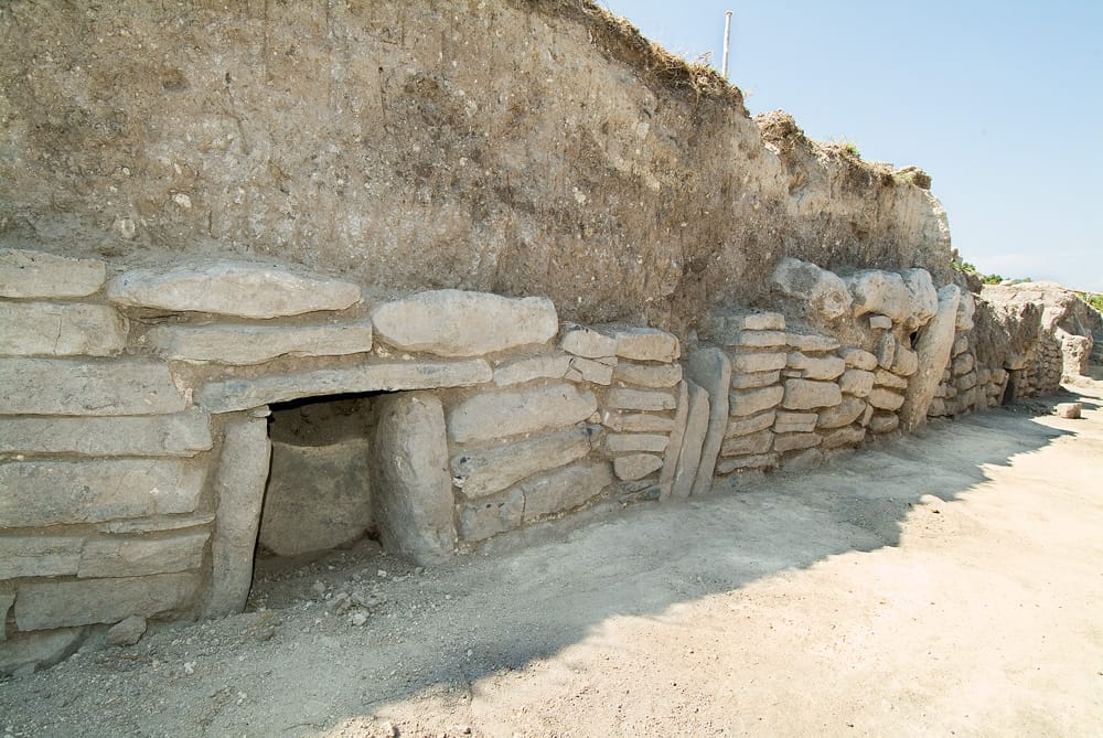 El basamento piramidal del templo fue construido con lajas de roca caliza y fueron unidas con una argamasa de lodo.